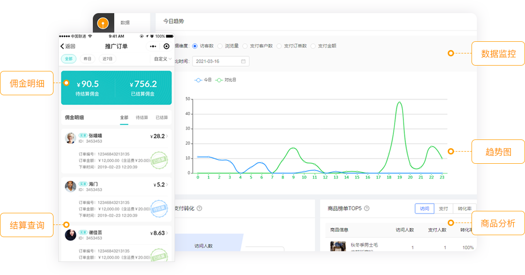 日用品類,商城主要模式是微信小程序+分銷裂變,